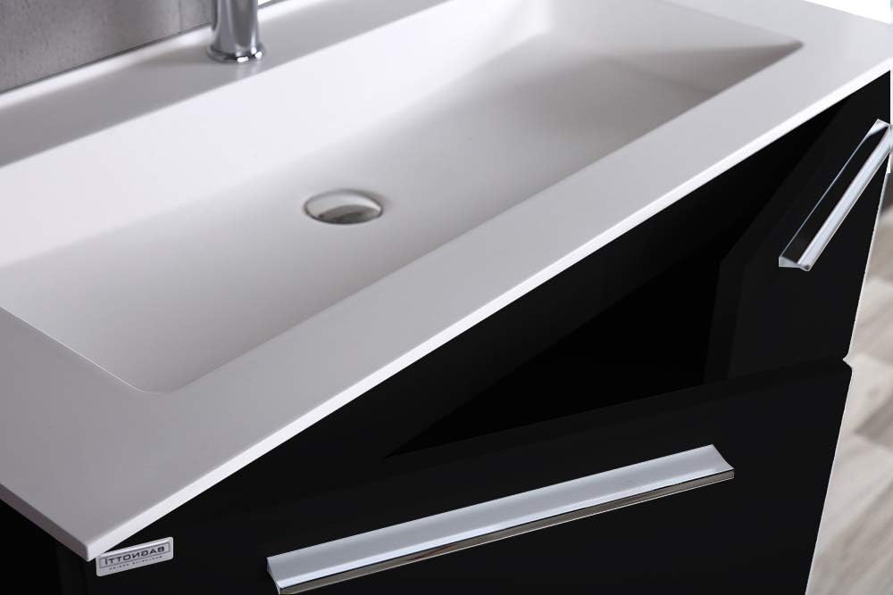 ✔ PACKAGE INCLUDED: Wall mounted vanity combo with sink and black main cabinet, side cabinet and LED matching mirror. Available with single hole for faucet mounting. (Attention) Faucets NOT included.