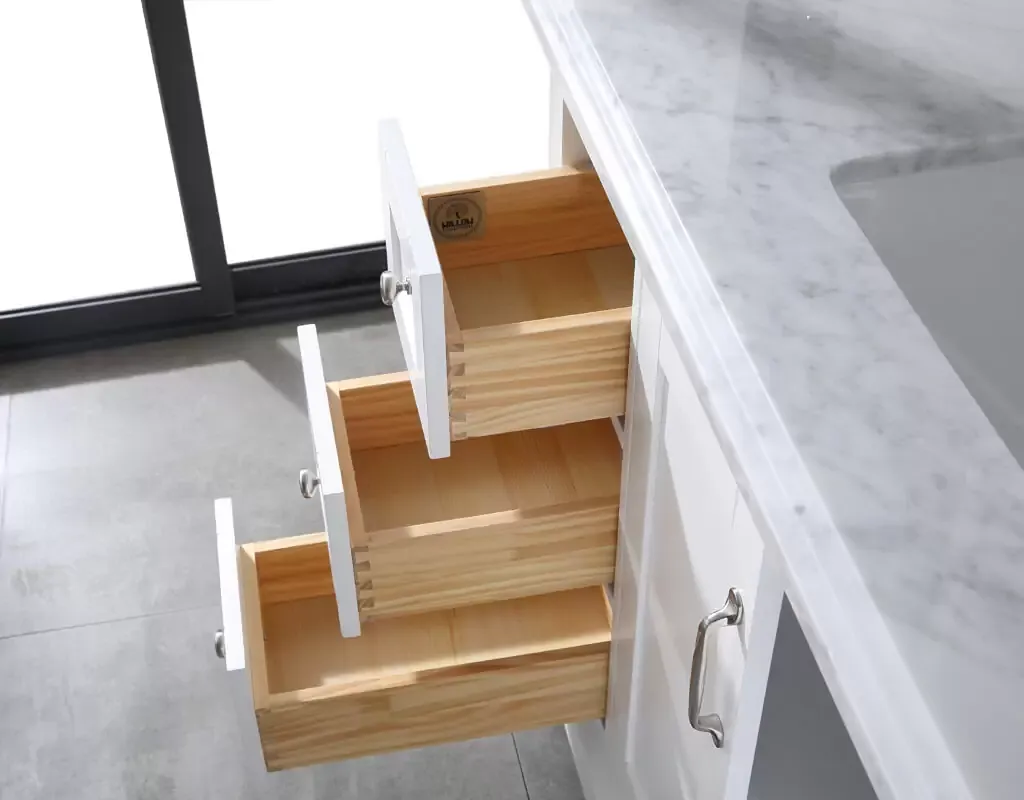 - Soft Closing Doors & Drawers: Equipped with soft-closing mechanisms, the doors and drawers ensure quiet and gentle operation, preventing wear and tear. This feature is essential for maintaining a peaceful bathroom environment and prolonging the life of the vanity.