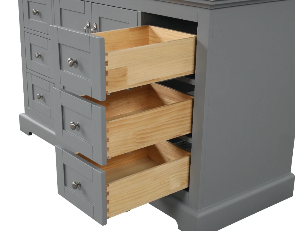 - Soft Closing Doors & Drawers: Equipped with soft-closing mechanisms, the doors and drawers ensure quiet and gentle operation, preventing wear and tear. This feature is essential for maintaining a peaceful bathroom environment and prolonging the life of the vanity.