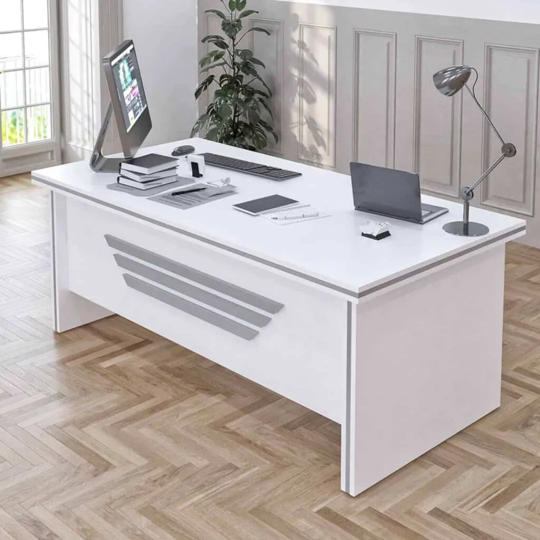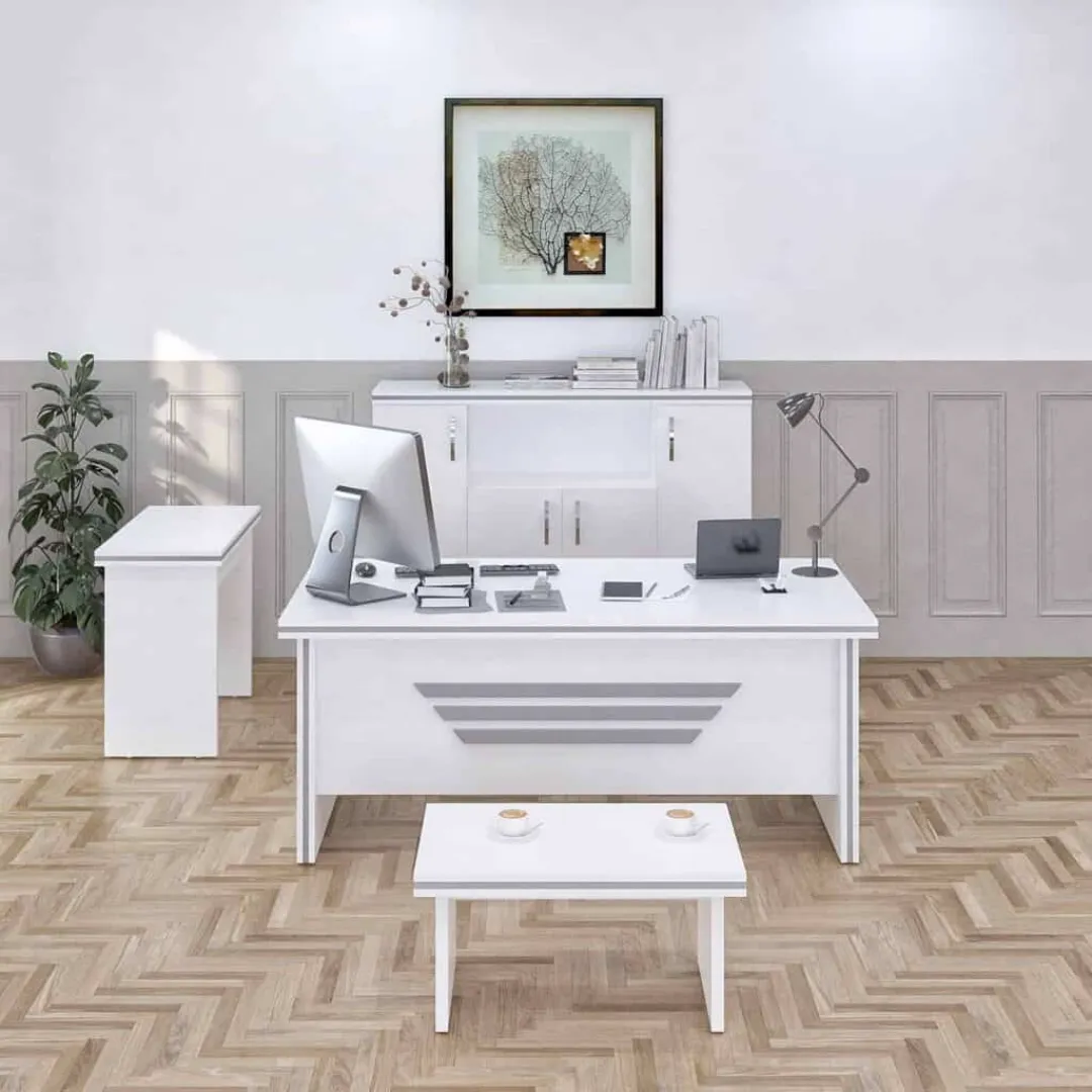 - GORGEOUS STYLE: Color of white & metallic grey give a welcoming impression to your visitors and colleagues by adding this stylish and sophisticated office furnitures. With extraordinary stability and visual elegance, this set makes your space look more stylish and premium. The elegant and beautiful appearance matches great with any office decors or home styles.